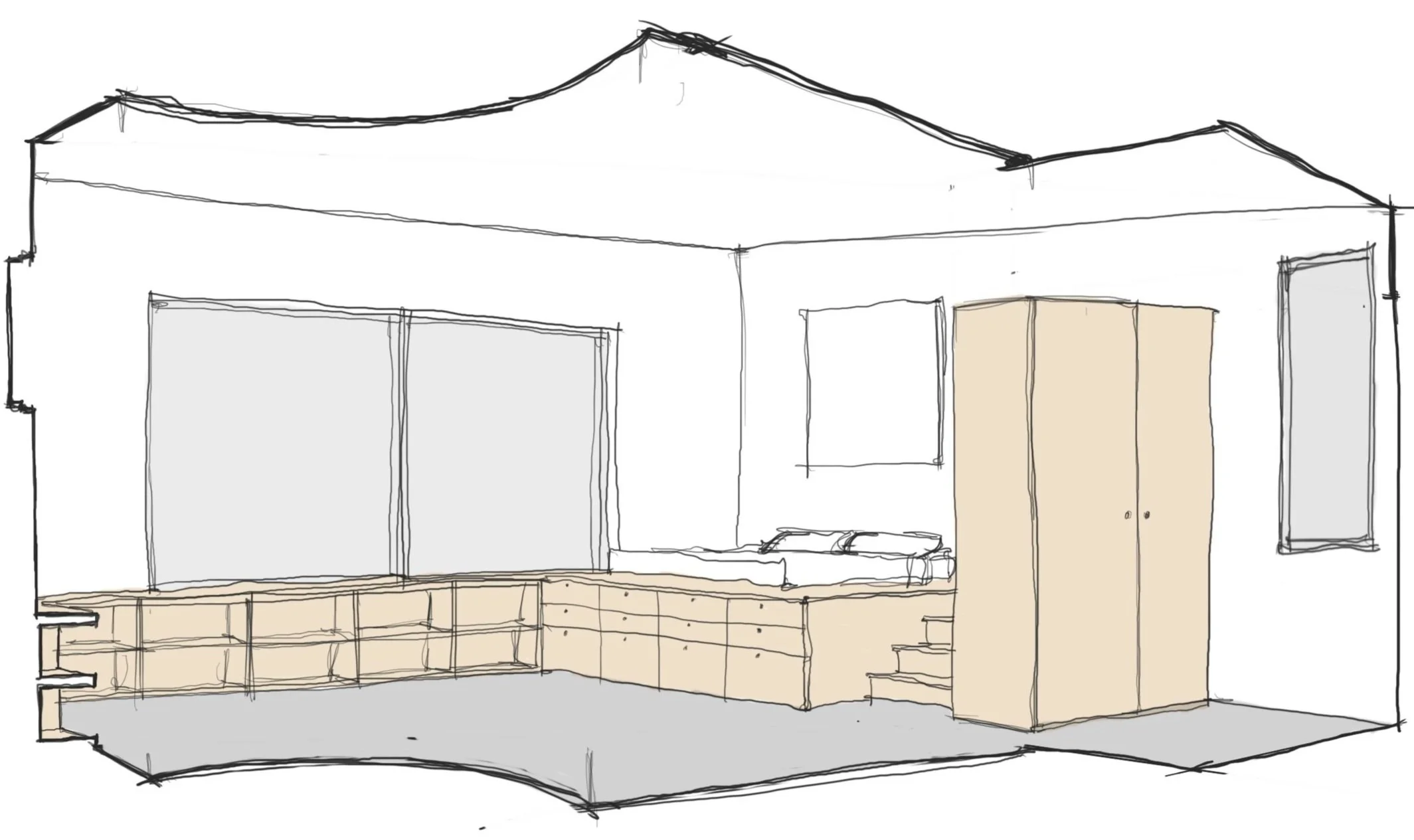 Design provided for a statement entry wall and primary bedroom in a new construction home at the top of a hill in the country.